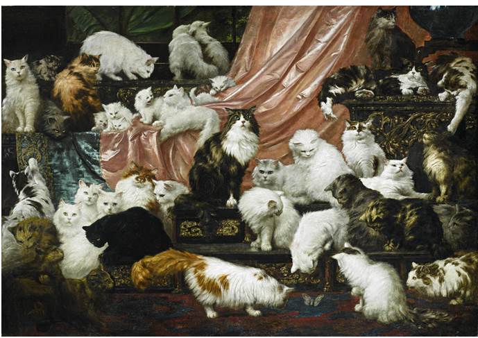This morning’s news of yesterday’s enormous auction record for Carl Kahler’s “My Wife’s Lovers'” a late 19th century painting of 42 of millionaire Kate Birdsall Johnson’s 350 cats, comes after yesterday’s revelation that the Kickstarter campaign for “Music for Cats” a project spearheaded by cellist David Teie, “smashed” its fundraising goal in mere days.