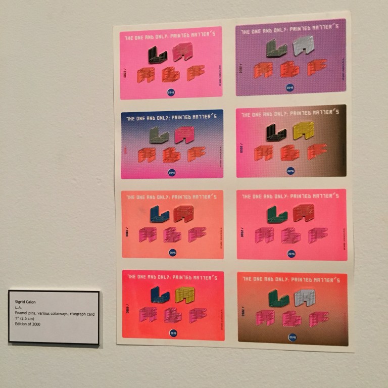Sigrid Calon’s booth was a big hit at last year’s LAABF, and she returned this year with more art and a commemorative pin, “LA”. Photo of Enamel pins, various colorways, risograph cards. Edition of 2000.