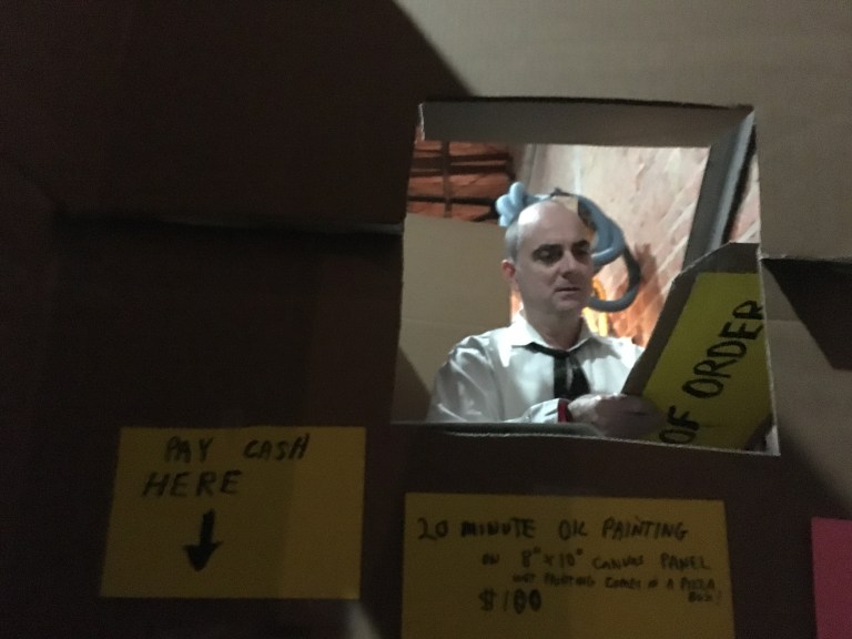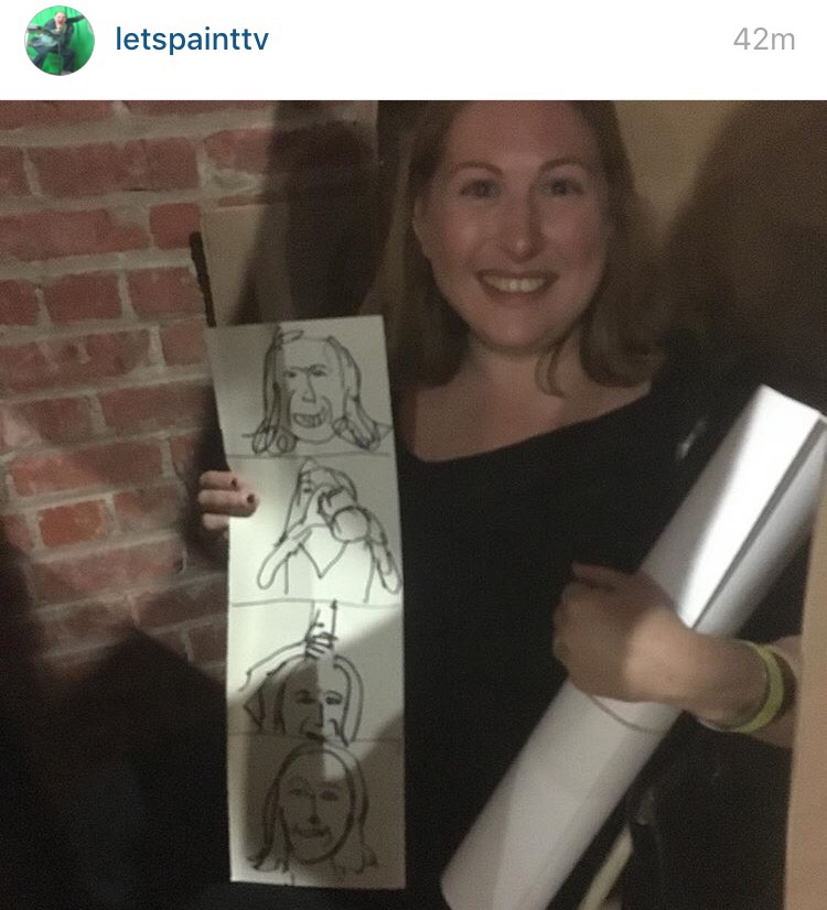 I had a power hour to walk the market in between LAABF and the FYA/Goodreads artists readings and I wish I had at least two more. Starting with my favorite donut painter’s newest project, a live painting booth, I sat in my throwback chair and created 4 poses in 4 minutes.