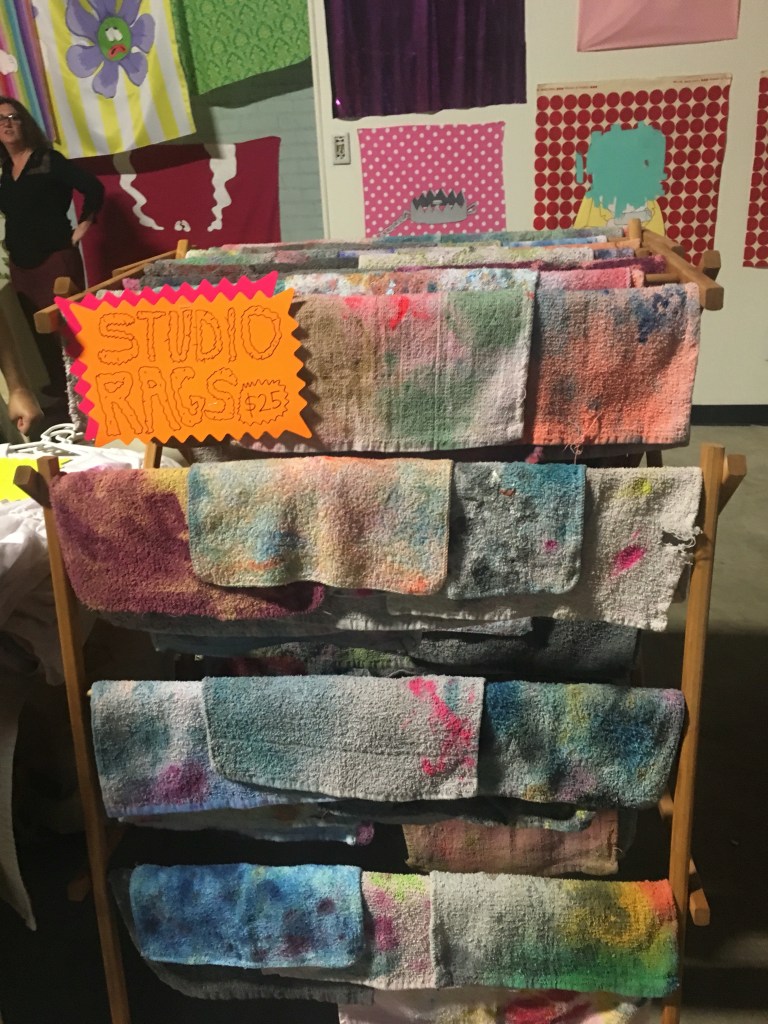 Amanda Ross-Ho was selling a beautiful selection of her studio rags. She told me she had been collecting them for a year.