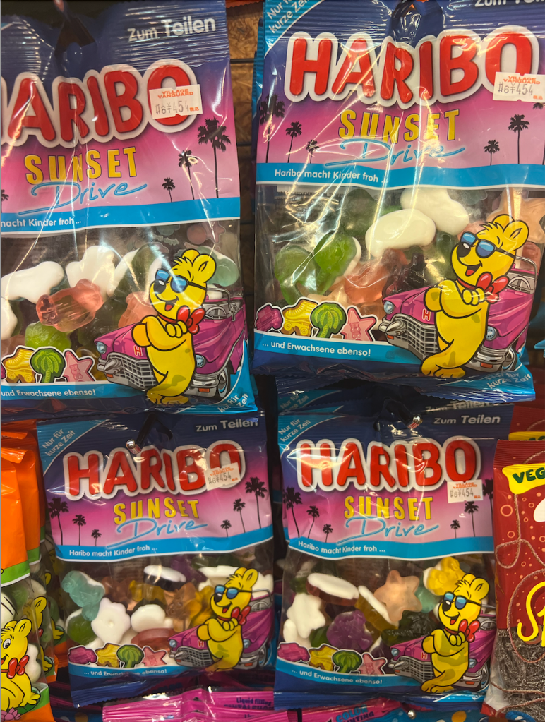 A few days later, we were wandering through Shimokitazawa when my eyes stopped at a display of Haribo Gummies. I always like to buy local gummies when I travel, especially funny ones, like the black licorice vampires that I first discovered in Berlin and refer to as “Berghain Haribo.” My eyes lingered at the words “Sunset Drive.”
