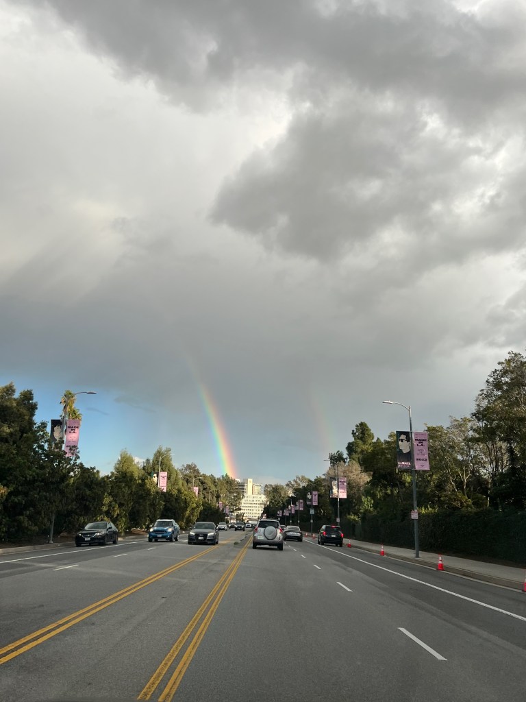 A year ago today, I went to the dentist for an emergency procedure. I had broken yet another tooth on a trip and it needed to be fixed. I remembered this fact because in my photo library there is a picture of the rainbow outside my dentist’s office. I’ve lived in LA most of my life and I often joke, “I never see rainbows.” Social media has become what it has because of rainbows, but while I’ve looked at thousands of other people’s rainbows, it wasn’t until a year ago that I was able to take a photograph of an LA rainbow. I was numb at the time from the anesthesia, but I was so thrilled that I finally had my own rainbow. So I took pictures as I drove across town.
