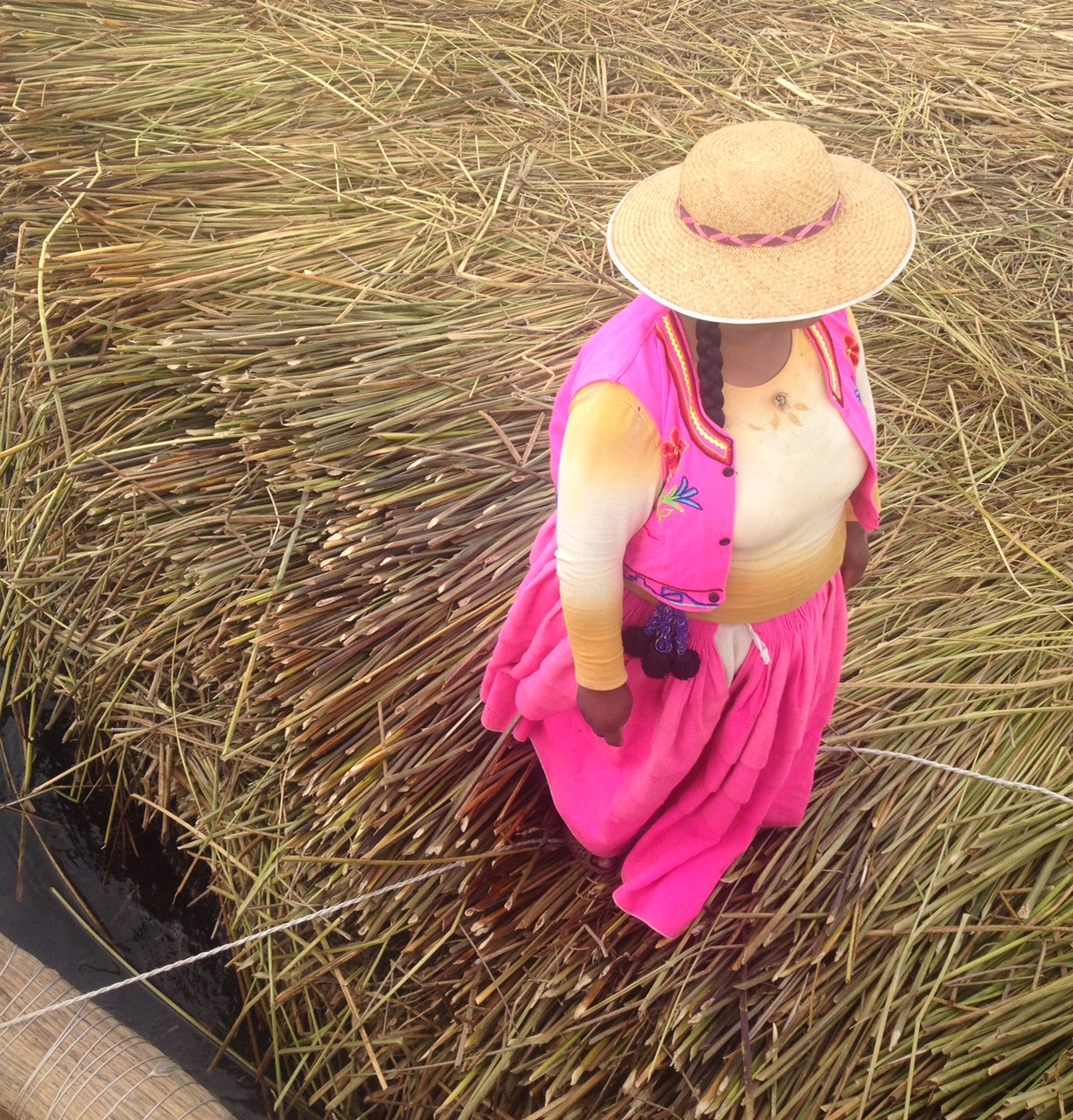 I really like that photograph in this post; I don’t know exactly where I was when I took it; perhaps on the totora reed boat that transported us between islands on that April day, or perhaps it was the other way around. Her yellow shirt appears different than I remember, slightly faded, but the fluorescent pink of her skirt, has stayed vibrant and I think the purpose of finishing this post so much time later it is a reminder to go downstairs and try to finally paint this memory.