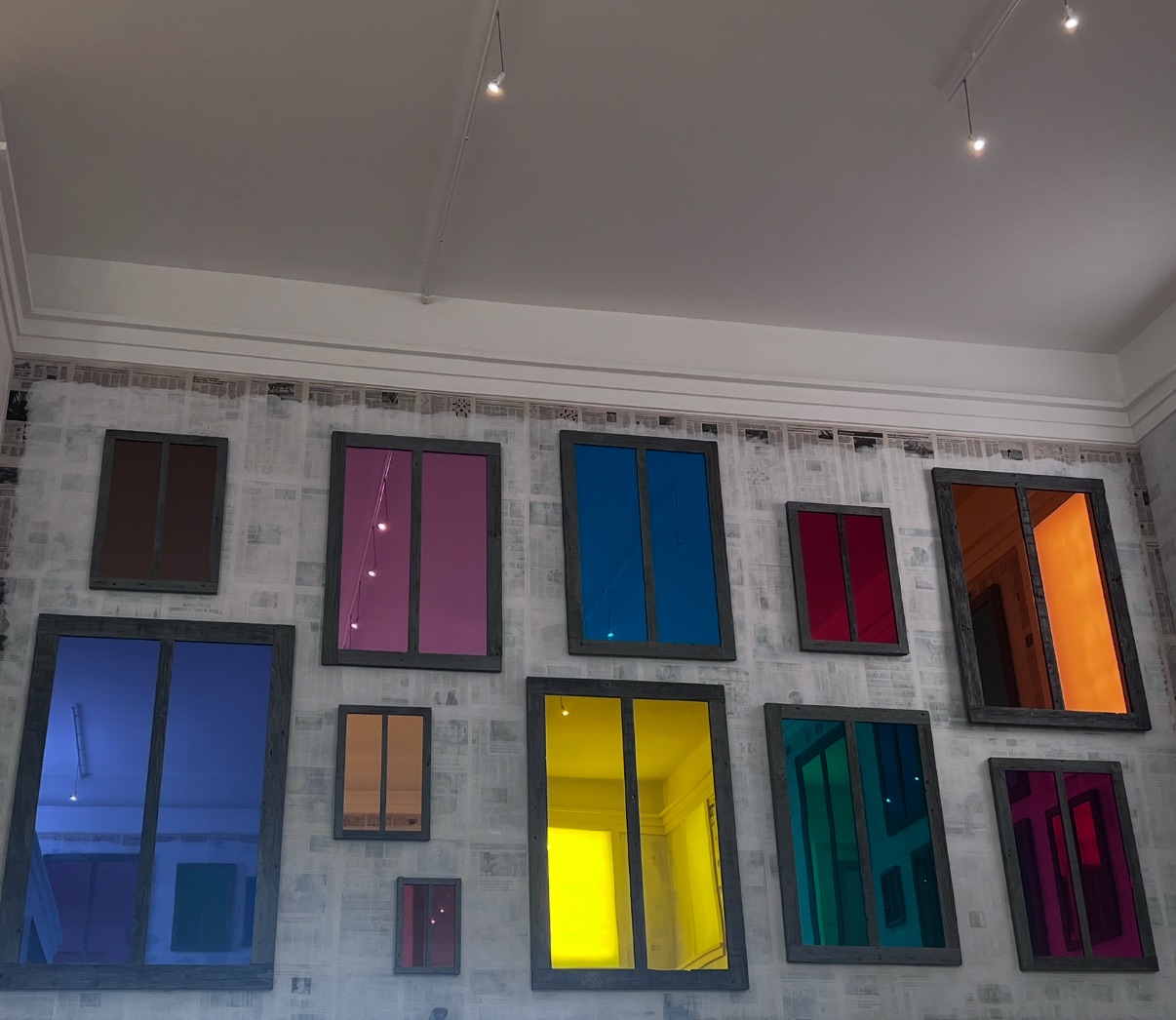 On this particular day in 2022, the den at the De La Cruz house was newly installed with the massive Ugo Rondinoni installation floor to ceiling, across the entire room. I complimented Rosa on it and she went into the story of the piece with its windows representing time and pointed out that every time Ugo installed it they would paper the walls with international news of the day. The day that they had installed it at the De La Cruz’s was the day after the Queen had died. In the seams of the wall were images of Elizabeth from newspapers around the world. Rosa kept pointing them out to us. It was joyous. I snapped some photos.